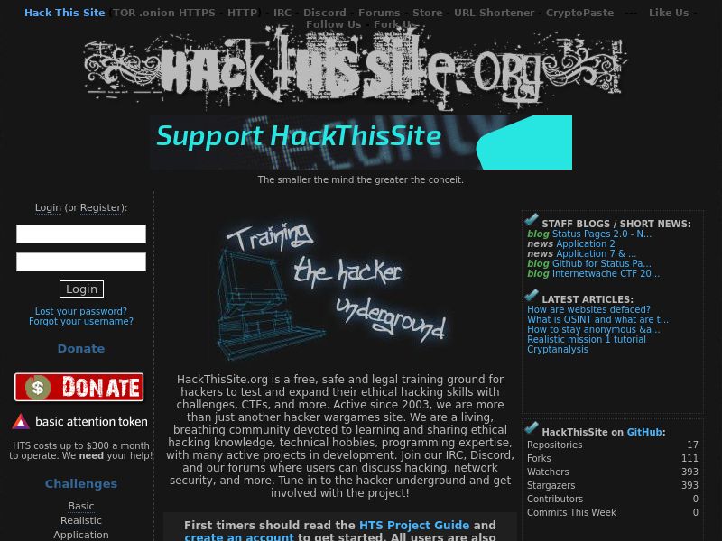 https://www.hackthissite.org/